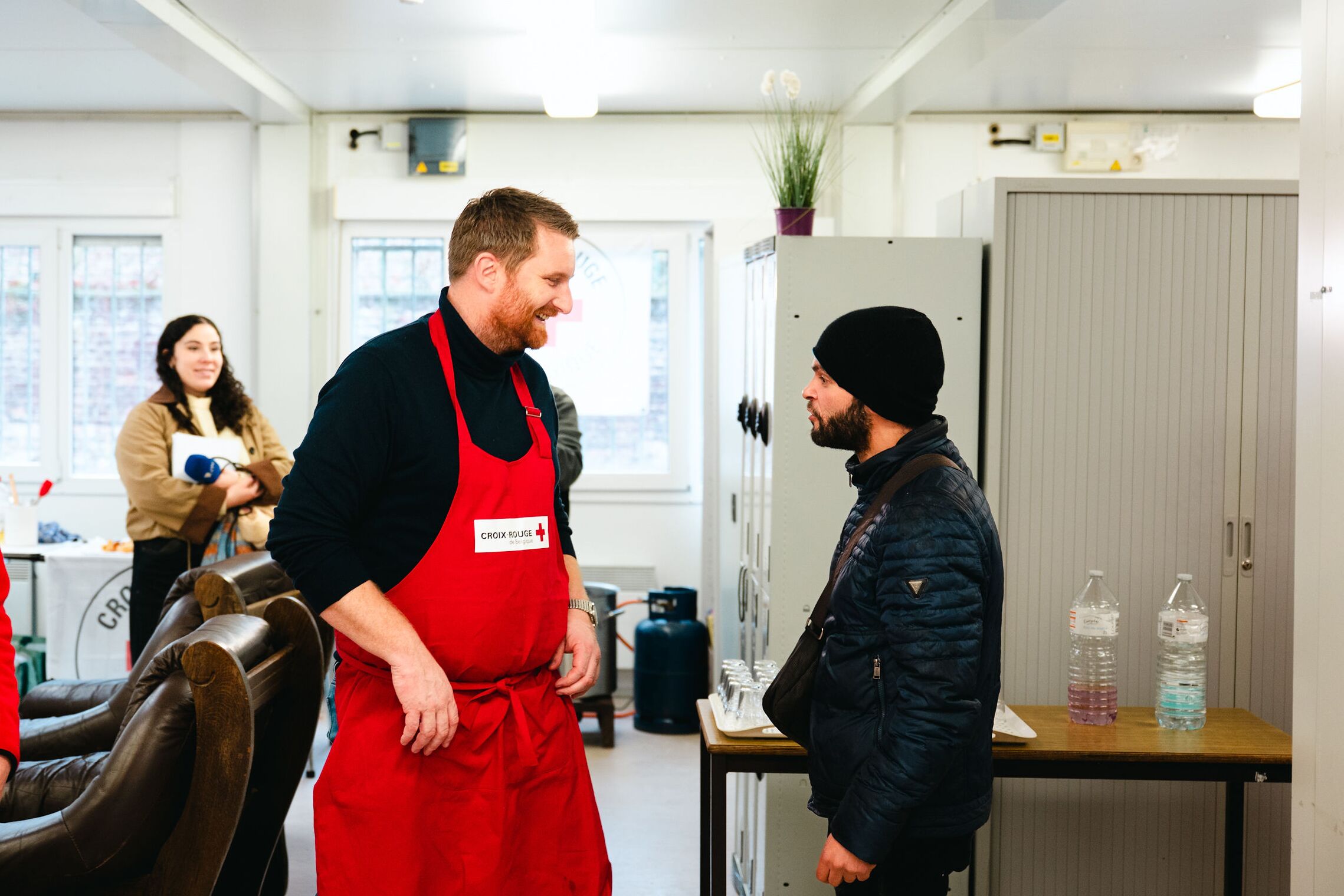 Le chef Julien Lapraille a enfilé son tablier pour préparer un repas aux 120 personnes sans abri, sans chez-soi ou en grande précarité qui fréquentent le centre d’accueil de La Louvière chaque jour.
